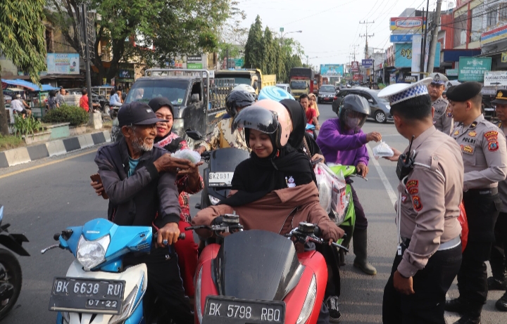 Kapolres Langkat AKBP David Trio Prasojo, SH, SIK, M.Si melalui Kasi Humas Akp Rajendra Kusuma menyatakan ; Jajaran Sat Lantas dan Sat Patroli Samapta Polres Langkat tidak hanya melaksanakan tugas pokok sebagai Pengamanan saja, disaat ini disuasana bulan suci Ramadhan Kami membagikan Takjil kepada mereka yang sedang berpuasa diperjalanan.